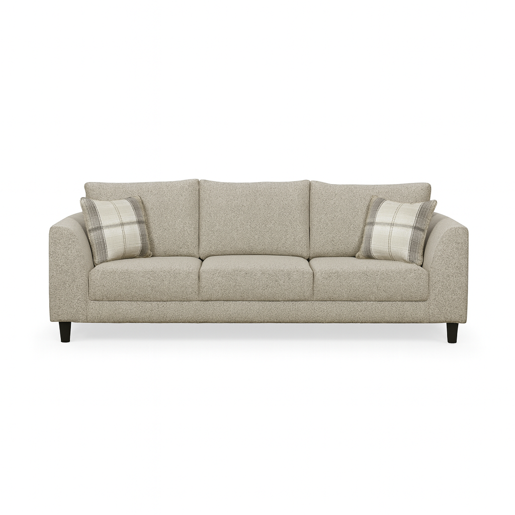 The Alexa Sofa brings a perfect balance of comfort and contemporary design to your living space. With its slightly curved arms, refined silhouette, and inviting warm color tone, this sofa instantly creates a cozy, welcoming atmosphere.