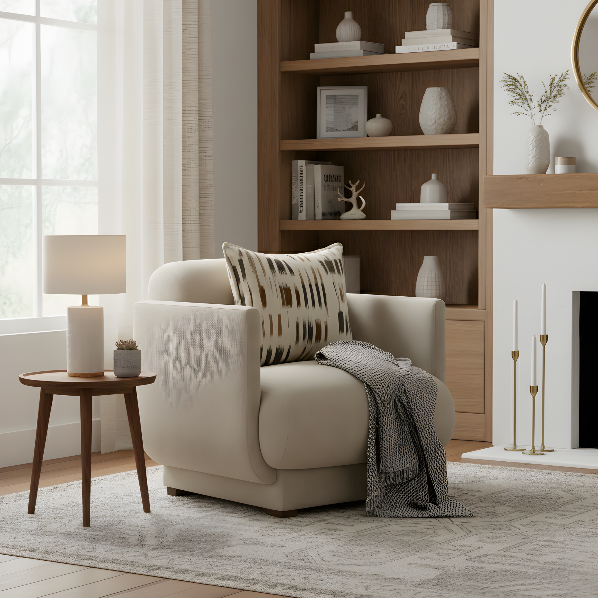The Bucharest Single Seater is a masterclass in contemporary elegance. Upholstered in plush dusky brown chenille, it evokes the warm glow of a Dubai sunset, offering a cozy retreat in any living space. Its sleek silhouette and gently curved armrests combine modern design with ultimate comfort, while the dark brown wooden legs provide a sturdy, grounded presence.