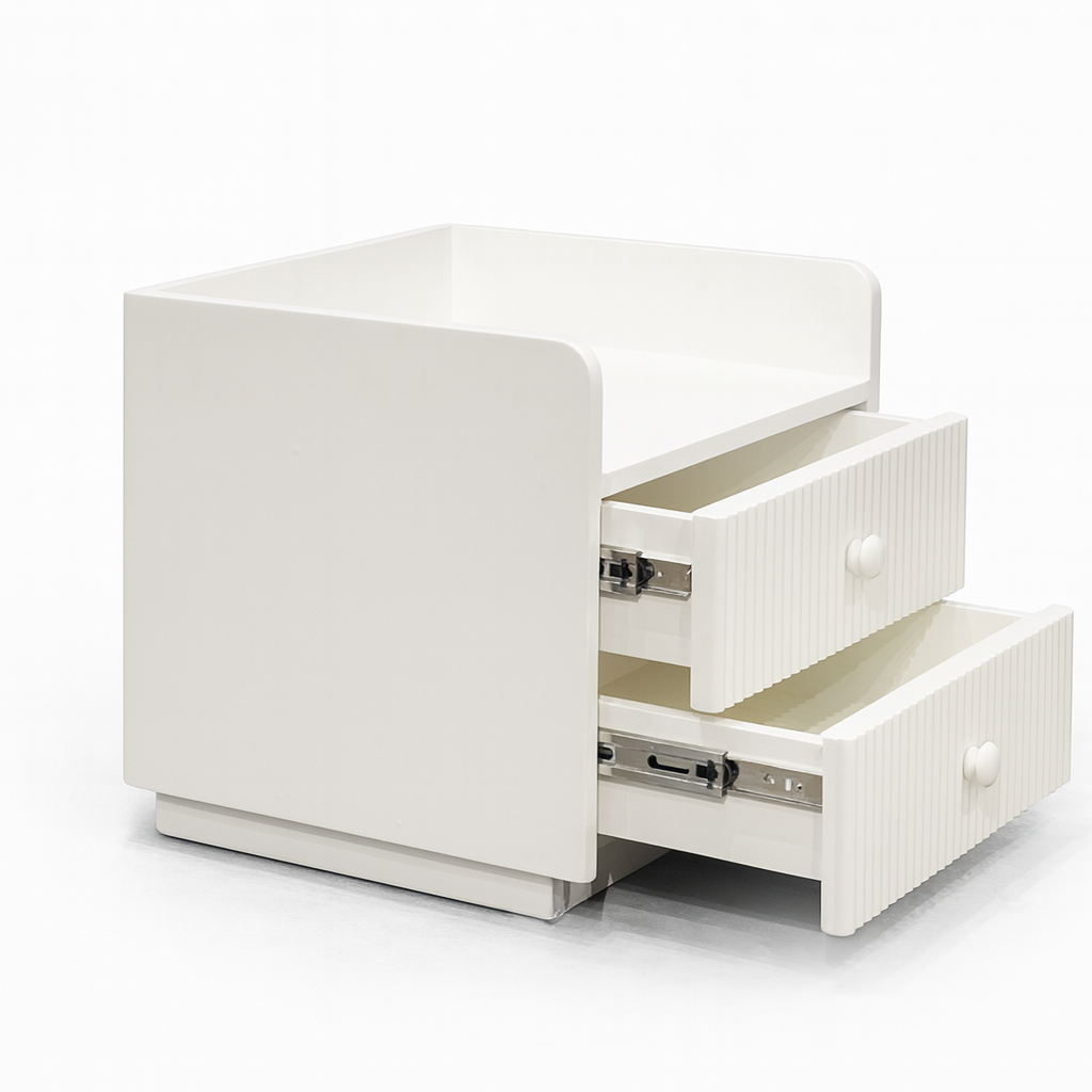 The Collette 0075 Bedside Table highlights the timeless appeal of lacquered wood, blending sleek sophistication with a contemporary edge. Subtle textured detailing adds visual depth, while the smooth finish reflects its refined craftsmanship. With its clean silhouette and understated charm, this versatile piece brings quiet elegance to any modern living space.
