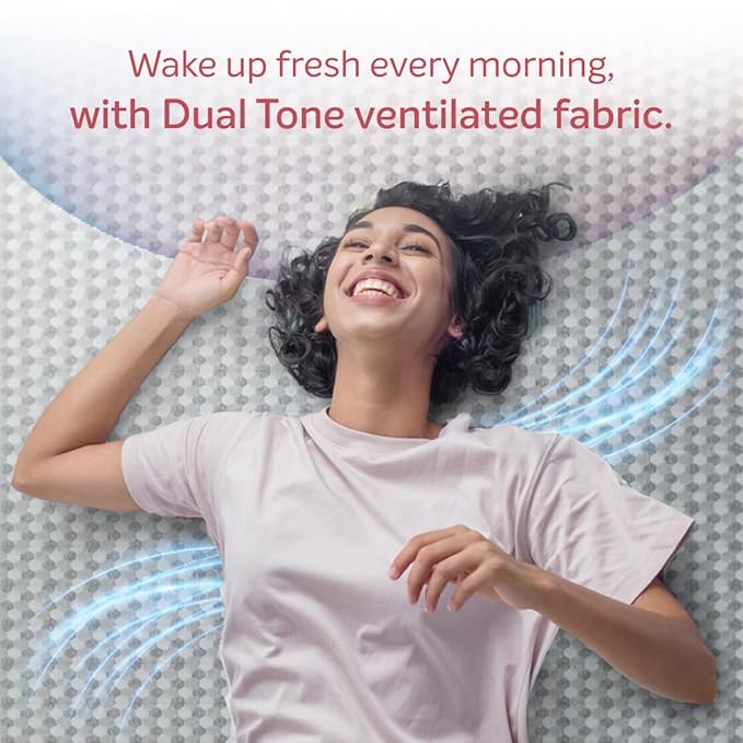 The dual-tone fabric and Air mesh bottom enhance breathability and style, while integrated ventilation promotes continuous airflow for a cool, comfortable sleep. Treated with Neem Fresche antimicrobial technology, the mattress protects against dust mites, allergies, and breathing disorders.