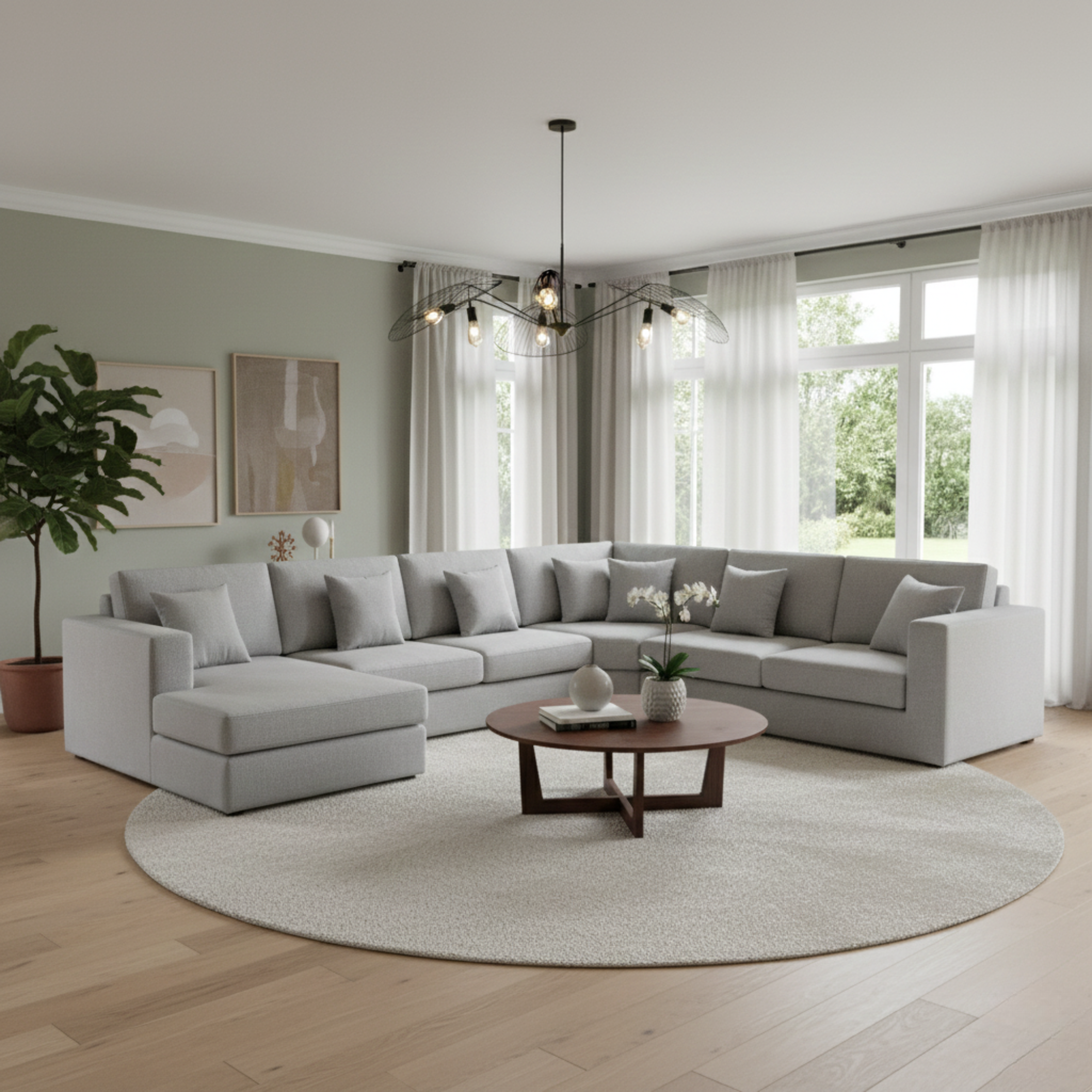 Elevate your living room with the Helsinki Collection, where thoughtful design meets effortless style. This stunning configuration features a one-seater right-armed sofa and an armless wedge, complemented by a two-seater armless sofa and a left-armed chaise. Together, they create a versatile and inviting space perfect for relaxing or entertaining. With clean lines and a balanced silhouette, the Helsinki Collection blends sophistication with everyday comfort, enhancing any interior with ease.