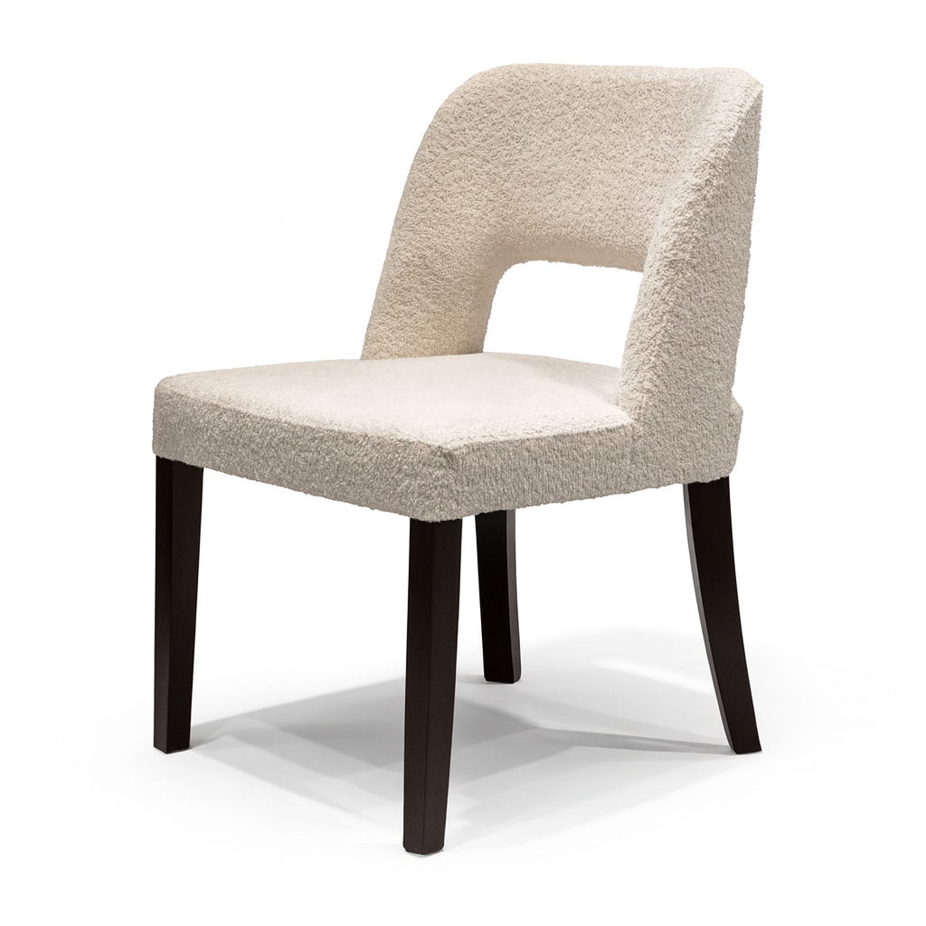 The DC-1203 Chair captures the essence of modern elegance through its sculptural lines and inviting form. With a gently curved backrest and open-back detail, it evokes a sense of fluidity and lightness while offering ergonomic comfort and support.