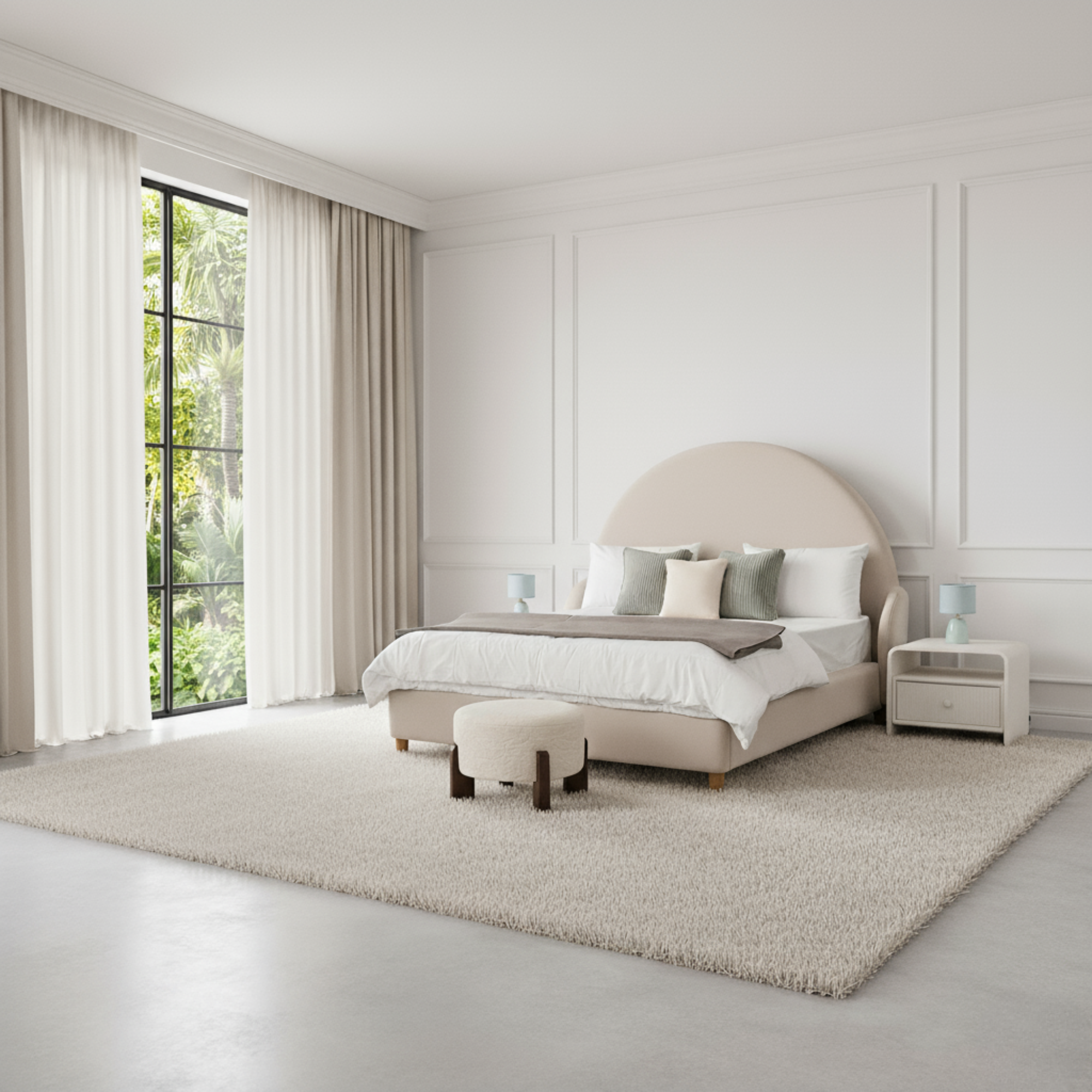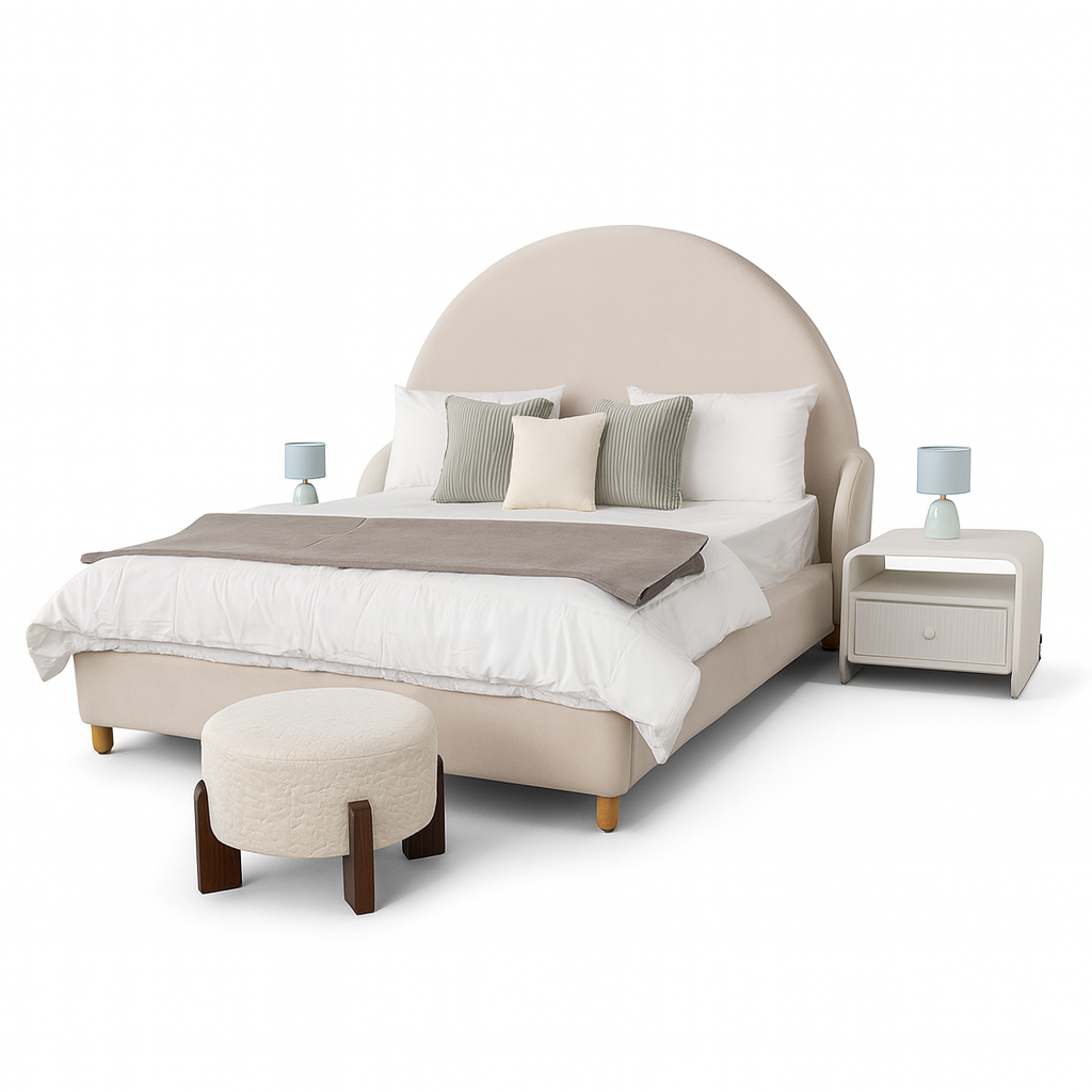 Kensington is a modern interpretation of timeless elegance, defined by its sculpted, arch-like headboard and soft, rounded contours. Inspired by natural forms, its calming silhouette brings a quiet sophistication to the bedroom.