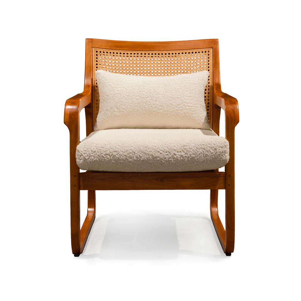 Designed with both style and durability in mind, Dalia offers ergonomic support with a gently reclined back and comfortable armrests. Its blend of rich wood tones, woven details, and plush upholstery makes it a versatile statement piece for living rooms, bedrooms, or reading nooks. Perfect for those who appreciate luxury and relaxation, the Dalia creates a serene spot to unwind in style.