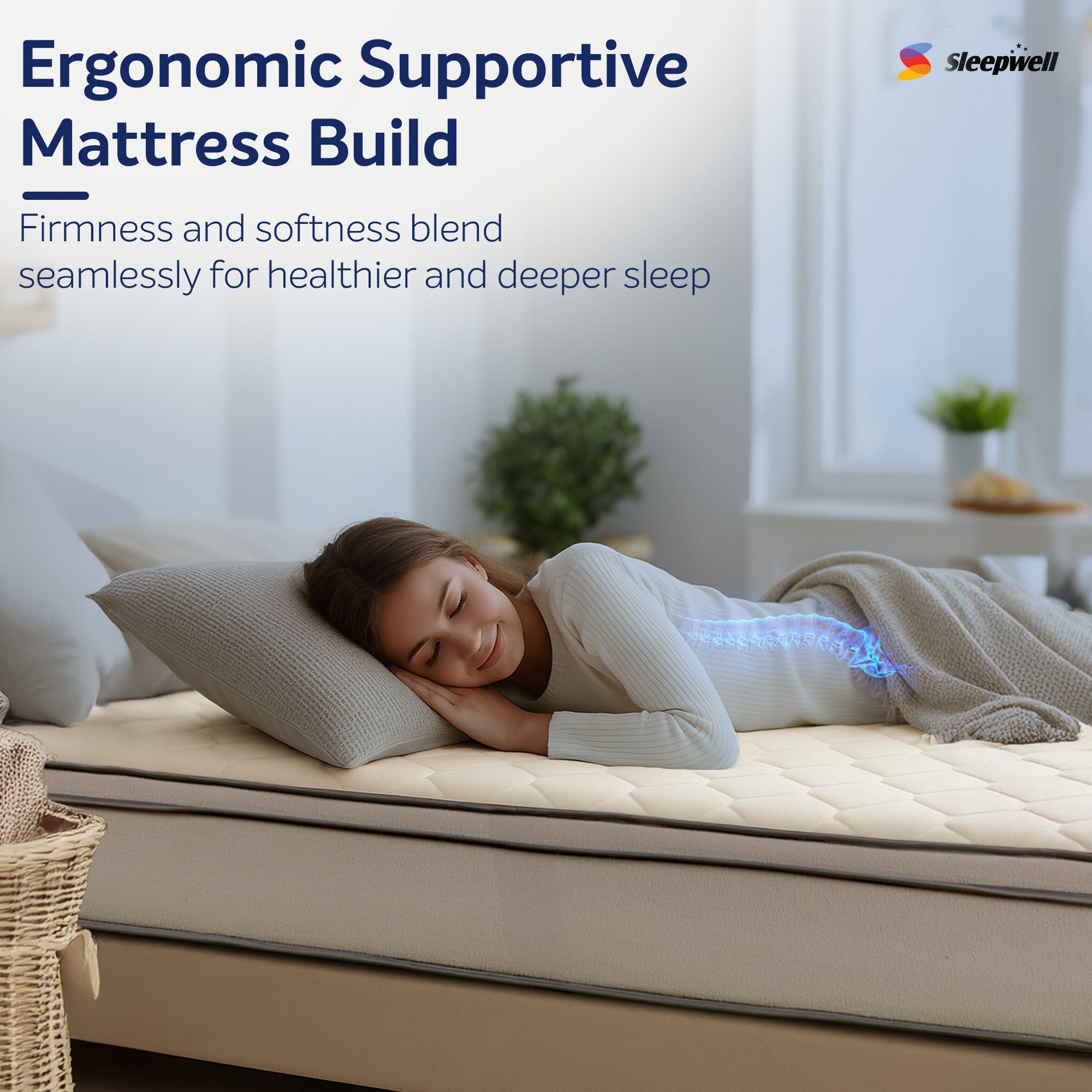 Combines innovative foam technologies to offer uncompromising firmness and advance bounce support.The Sleepwell Executive Bonnell Spring all that you need in a mattress - support, comfort, and luxury.