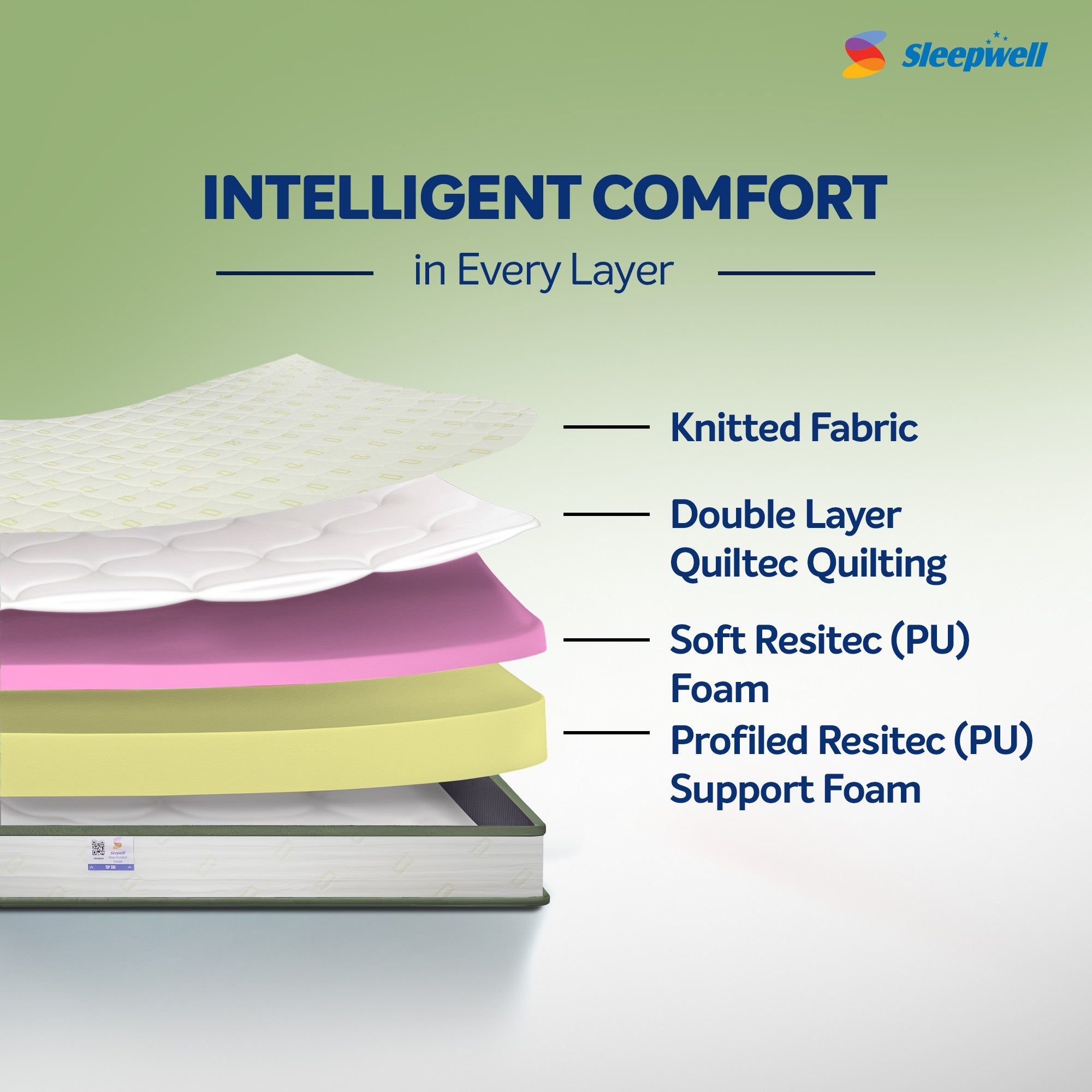 Quiltec & Resitec (HR) Foam: This mattress is designed for ideal body posture alignment with double-layered Quiltec and Resitec foam making mattress neither too hard nor too soft. This medium-firm mattress offers peaceful sleep for refreshing morning