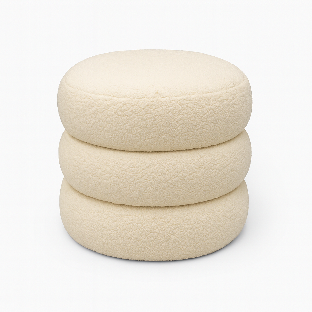 The Bongo Three-Layer Pouf brings a playful yet sophisticated charm to your living space. Wrapped in a luxurious white soft bouclé fabric, this piece combines modern design with irresistible comfort. Its unique stacked three-layer silhouette adds dimension and style, making it more than just a pouf — it’s a statement accent for any room.