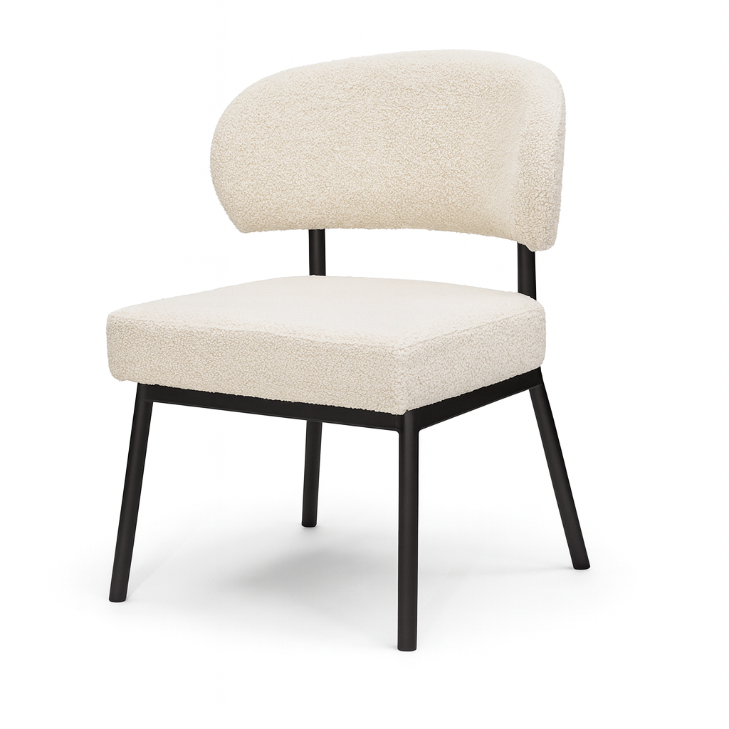 Upholstered in soft, textured fabric, the seat and backrest invite ease and relaxation, while the slender black metal legs lend a modern edge with enduring strength. The open, airy frame adds visual lightness, making it ideal for compact spaces without compromising on style.