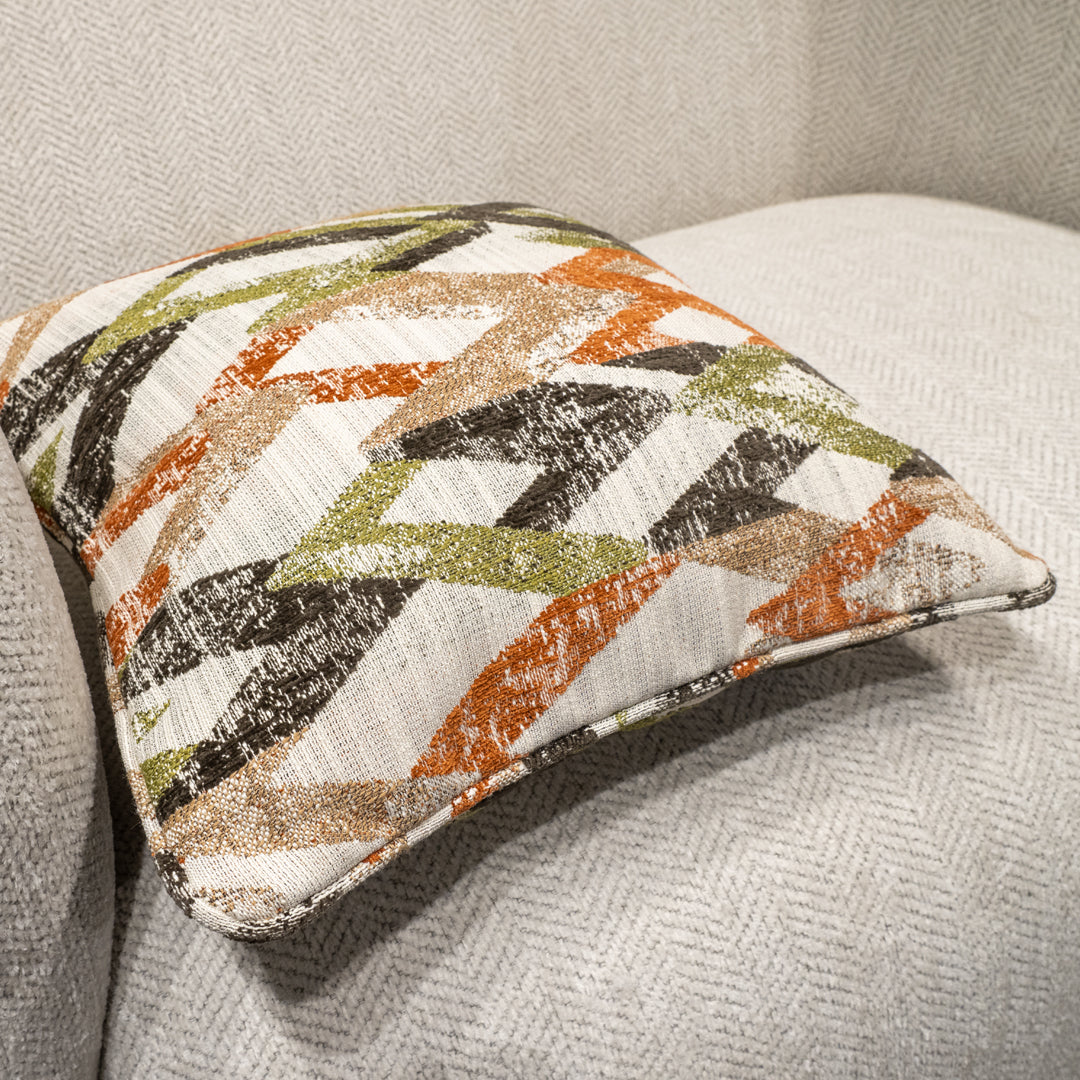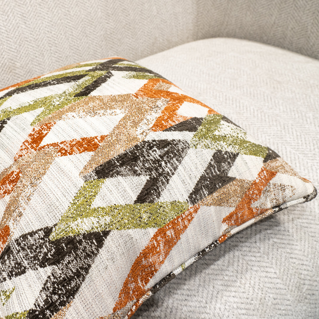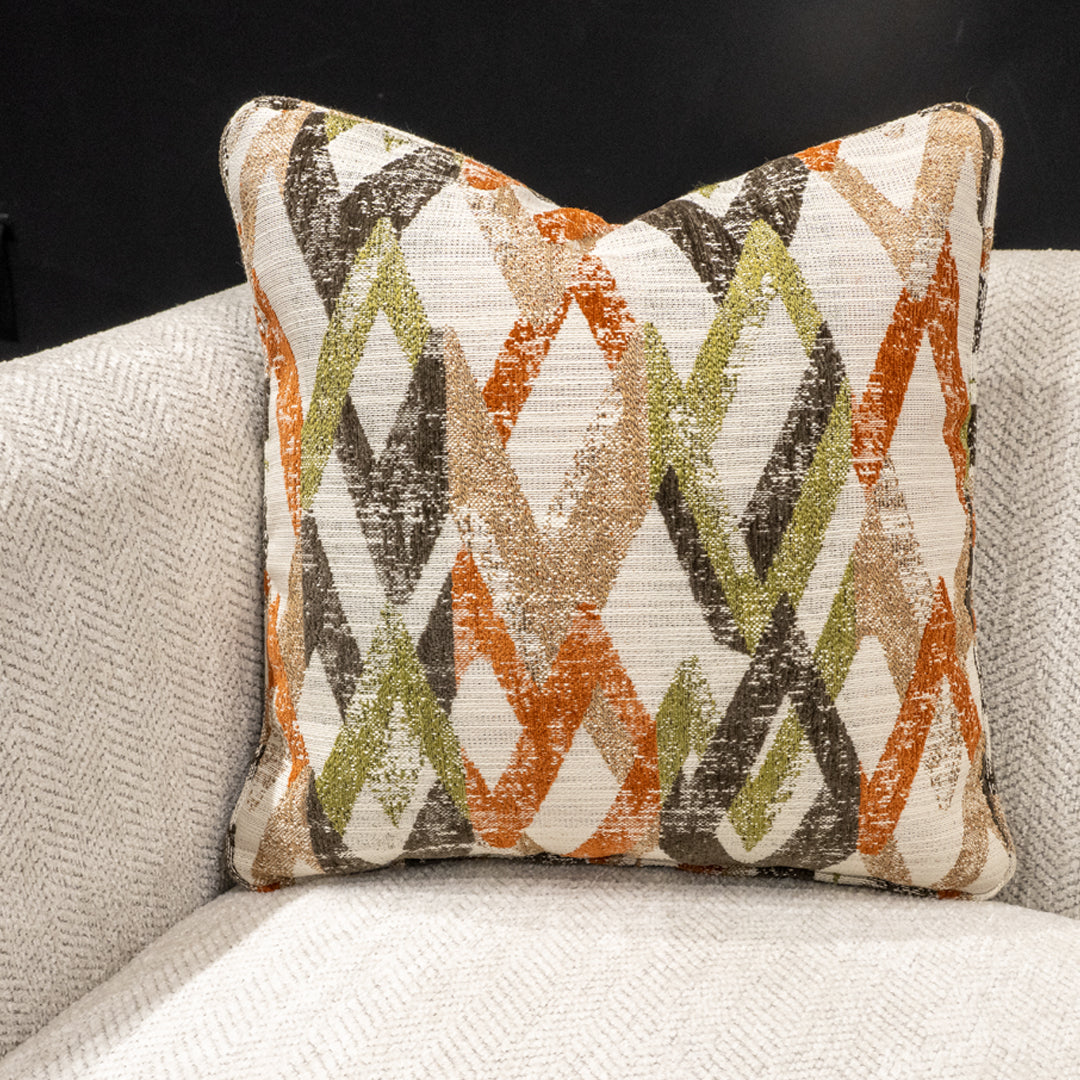 Add a touch of warmth and character with this vibrant throw pillow, featuring a striking diamond and chevron pattern in rich earthy tones—burnt orange, olive green, warm beige, and deep brown. The subtly distressed texture lends a rustic, lived-in charm, while the layered geometric design infuses any space with bold, dynamic energy. Ideal for accenting neutral furnishings or enhancing eclectic and boho-inspired interiors, this pillow makes a stylish and inviting statement.