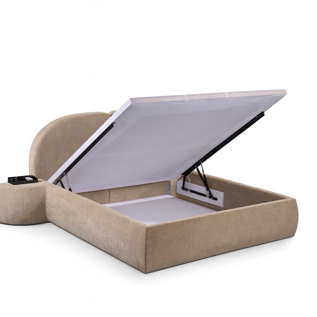 The Laura Bed is designed for those who love a seamless, modern look with everyday practicality. Featuring built-in bedside tables on both sides, this bed brings perfect symmetry and effortless convenience to your bedroom.
