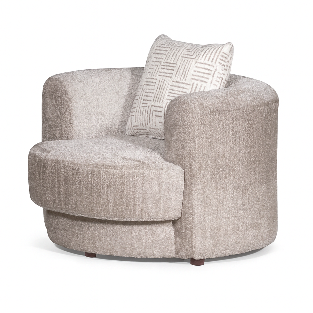 The Mars Arm Chair captures the same graceful curves and timeless elegance as its sofa counterpart, distilled into a single, sculptural seat. Its rounded silhouette and plush cushioning create an inviting retreat, offering both comfort and style in perfect balance.