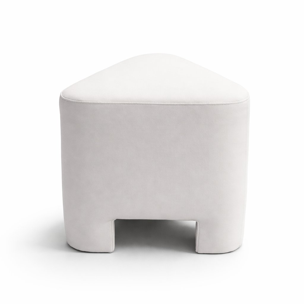 Redefine your lounging experience with the Pebble Pouf. Breaking away from traditional rounded silhouettes, the Pebble features a sophisticated triangular form that serves as a functional piece of art. Its clean, geometric lines offer a modern architectural edge, while the soft, cream-white upholstery ensures it remains a cozy addition to any room.